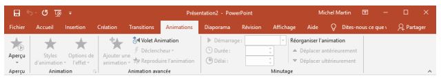 L'onglet Animations propose des animations et des transitions pour donner vie aux objets inclus dans vos diapositives.