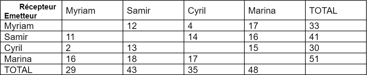 3) À l'aide du document 3, veuillez réaliser un sociogramme en précisant, à l'aide de flèches, le sens et le nombre des échanges.