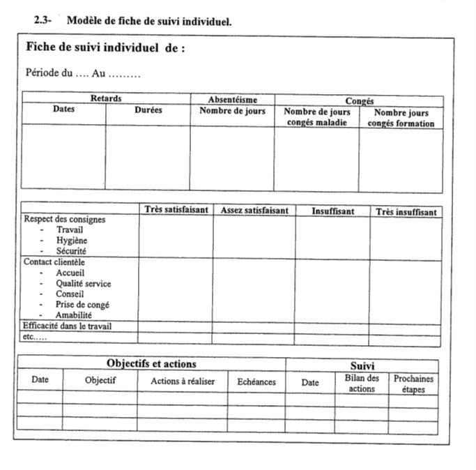 Votre manageur vous demande de mettre en place une procédure d’évaluation plus rigoureuse (rythme des bilans d’évaluation, fiche de suivi individuel).